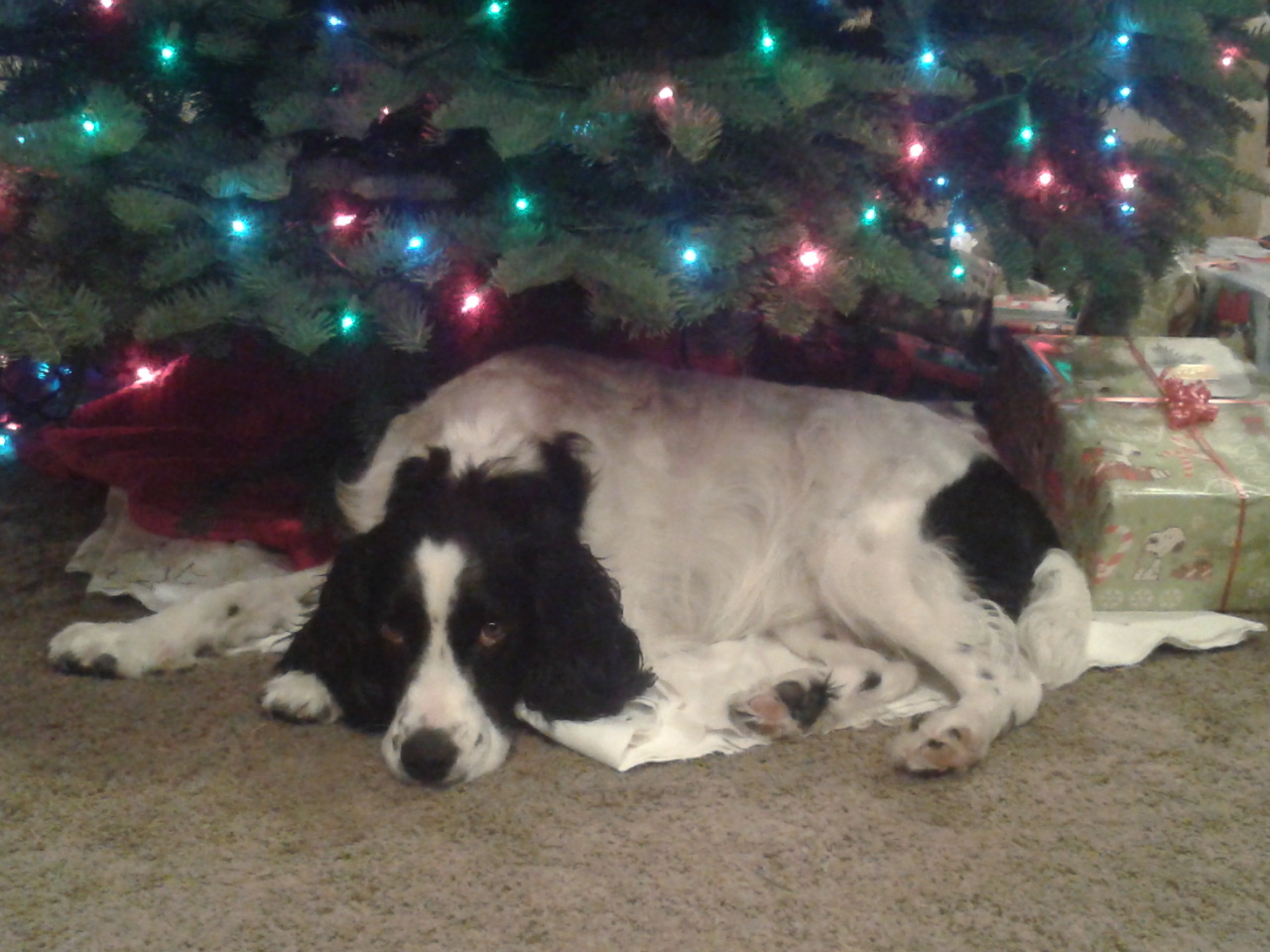 So A.J. spent his first Christmas with us getting a shot at the vet that made him barf up sausage and bread dough.