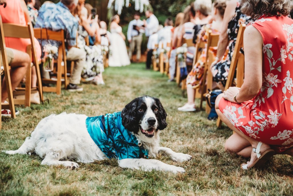 By this point it had already been a long day, everyone was sitting, it was quiet, and A.J. decided it was time to rest. He laid down right at the end of the aisle, facing away from the bride and groom. I started to get a little nervous he wouldn’t notice when the rings were called for. Suddenly the nightmare scenario for me (which of course I didn’t think of when we were planning this out) was looking possible: I might have to walk the rings all the way down the aisle.